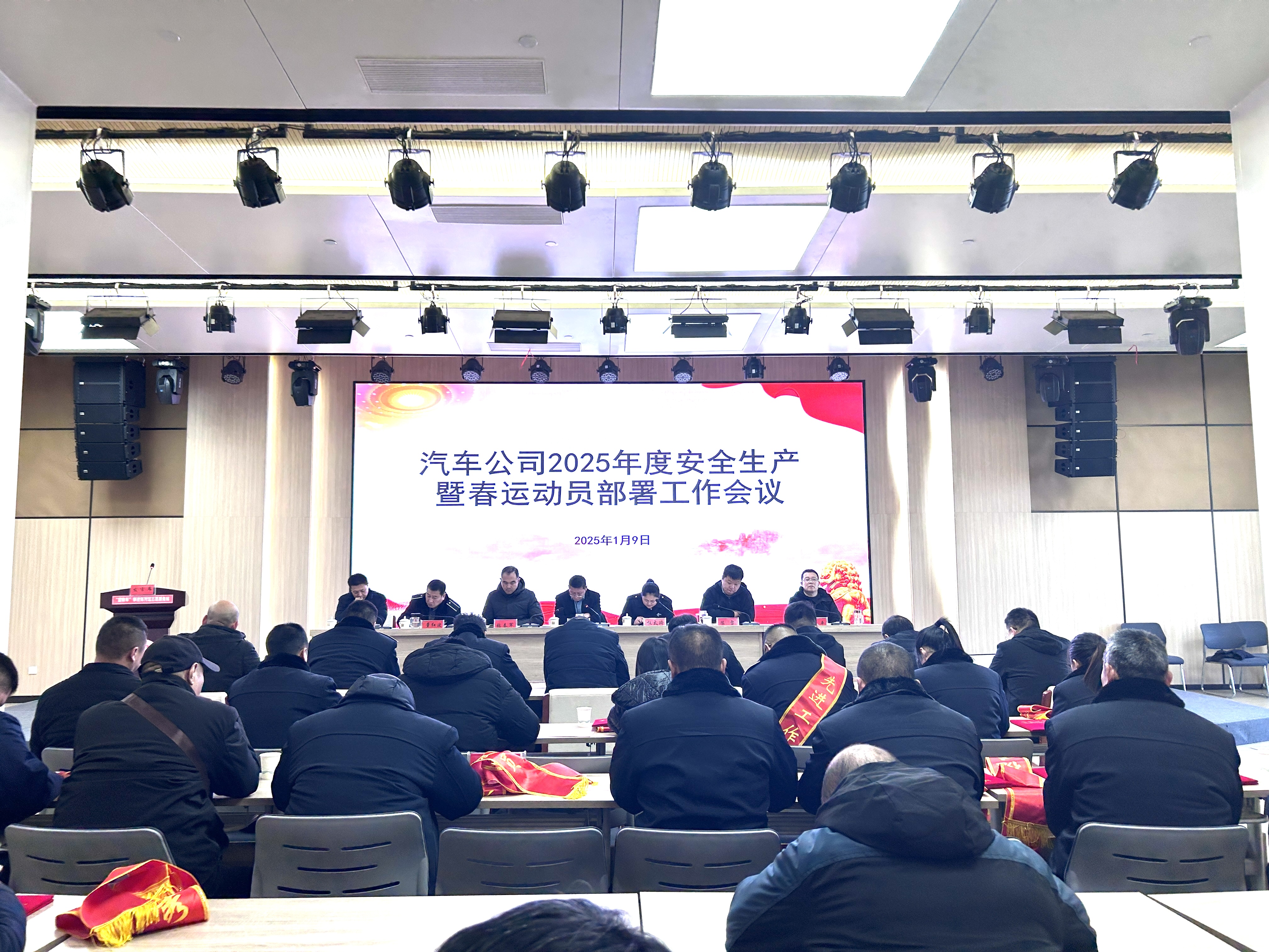 1月9日上午,汽车公司召开2025年安全生产暨春运动员部署工作会议。公司总经理石庆勇及领导班子出席会议。公司各部门主要负责人,各单位党政工主要领导、分管安全(经营)领导,安全(经营)部门负责人、安全生产先进集体、先进个人及优秀驾驶员参加会议。会议由党委副书记权太琦主持。