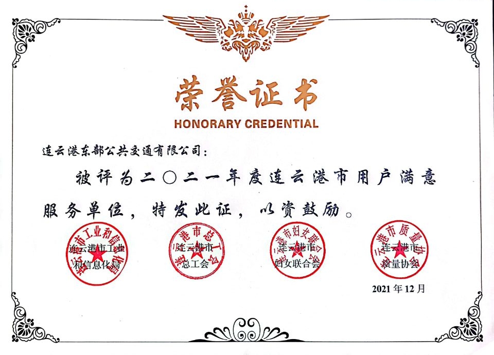 近日,公交米兰app最新版下载,米兰(中国)公交事业二部(原东部公交)荣获由连云港市工业和信息化局、市总工会、市妇女联合会、市质量协会联合颁发的“2021年度连云港市用户满意服务单位”荣誉称号;公交事业二部洪运伦荣获“2021年度连云港市用户满意服务之星”称号。