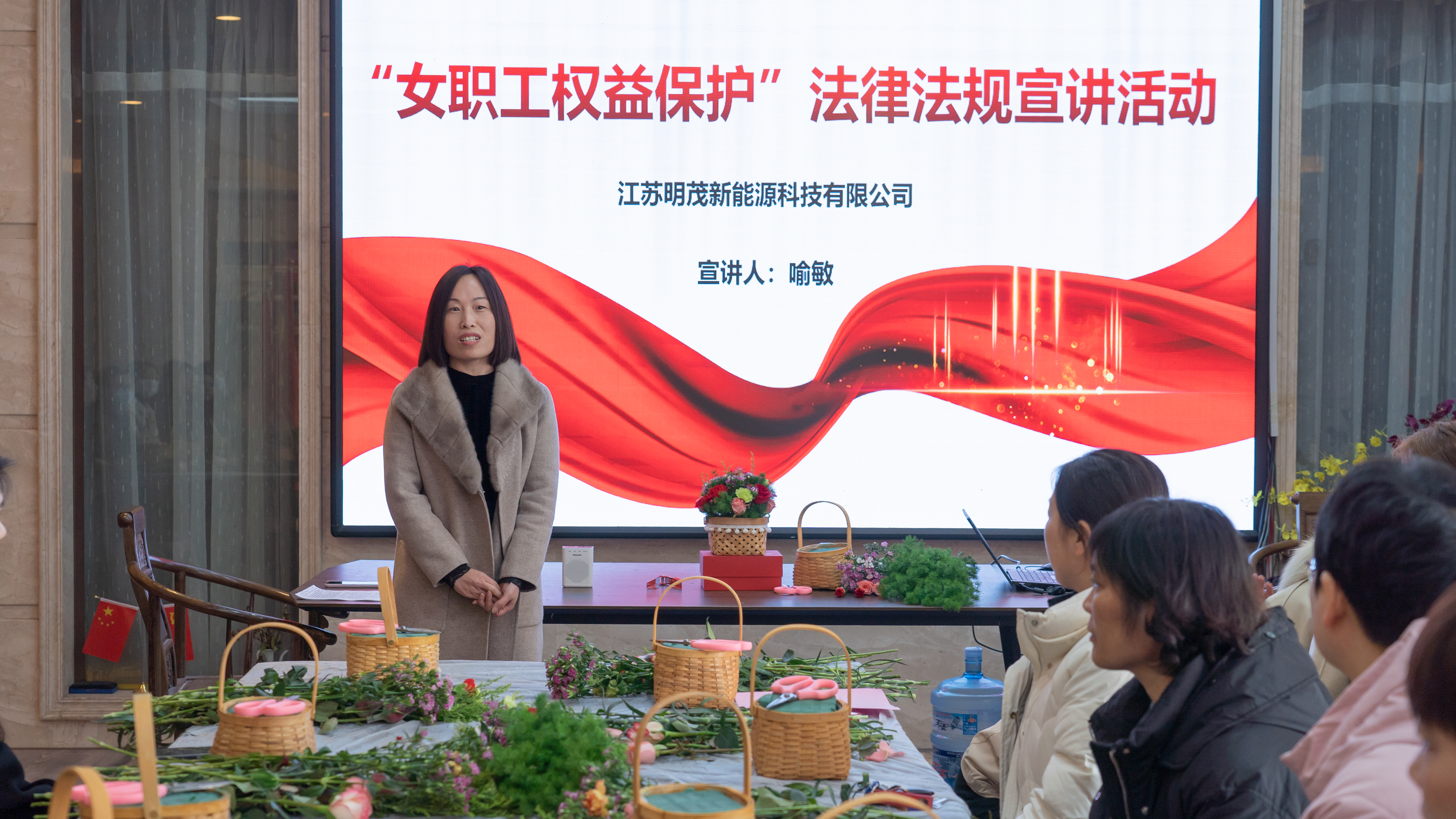 活动结束后,明茂公司组织了女职工开展插花活动,并为大家发放了妇女权益保障法修订版宣传资料共40余份。