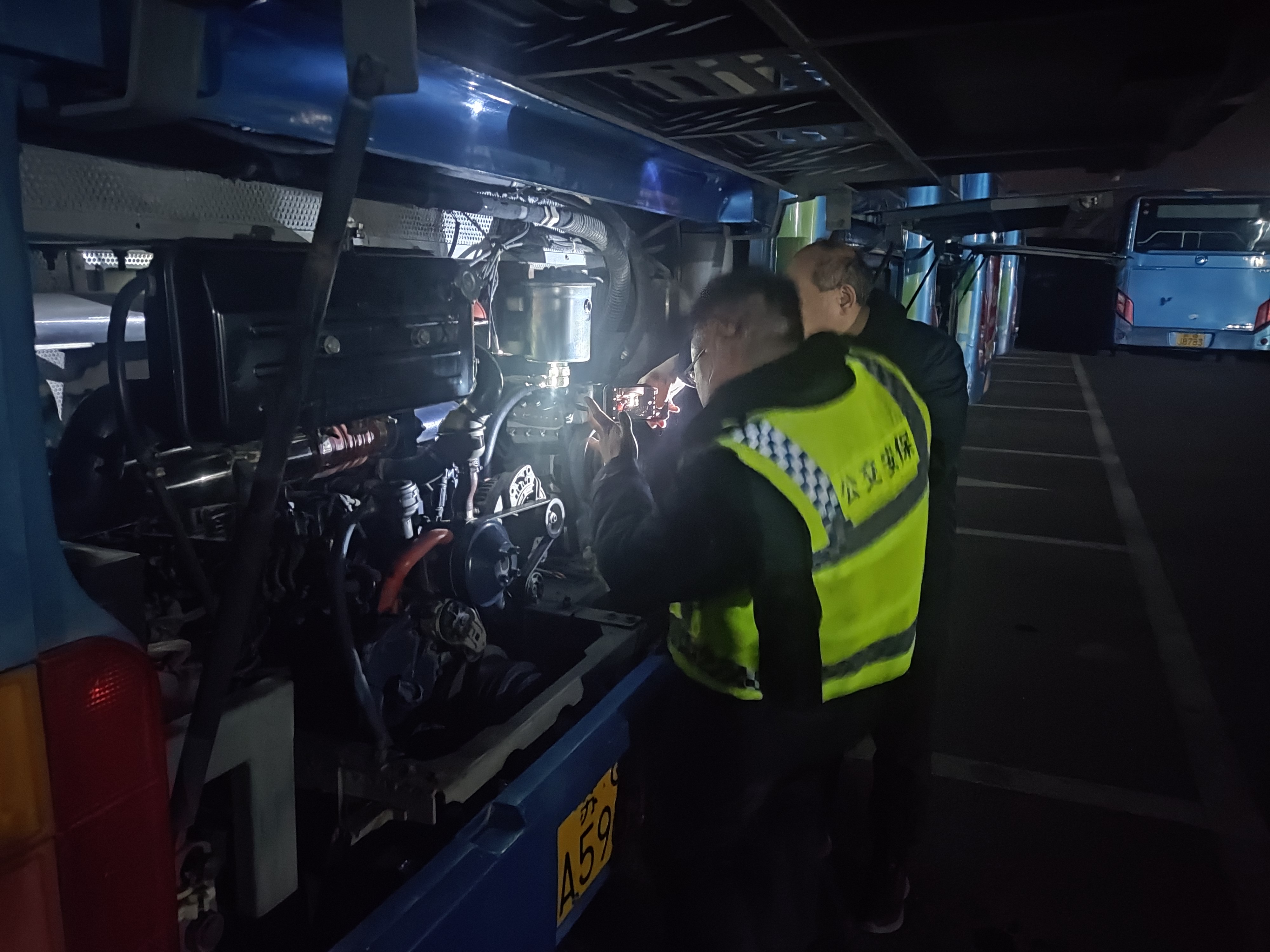 近日,公交集团在新坝场站启动了夜查行动,旨在进一步巩固公交运营的安全基础,全力构建坚固的安全防线。