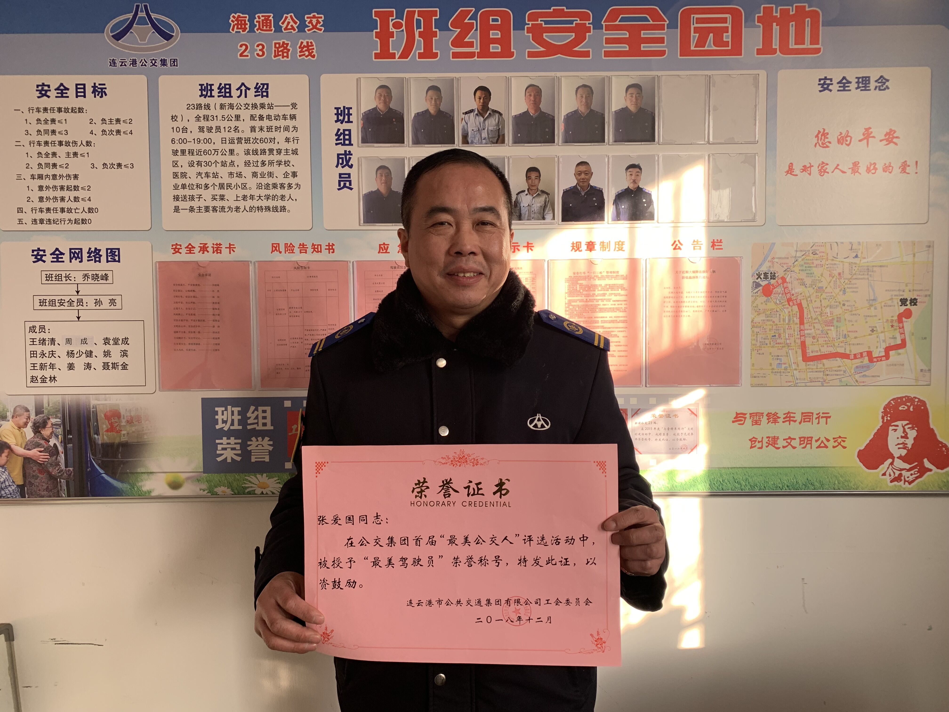 安全两字他总是牢记在心,他总是说:“交通安全是驾驶员重中之重的大事。”“宁停三分,不抢一秒”不仅是公司的规章制度,更是他日常行车的工作准则。闲暇之余,他会关注一些违规事故案例,并通过这些案例举一反三,汲取教训,确保自己的行车安全。每天收车回到场站,他做的第一件事情就是对车辆进行检查,哪怕一点小毛病,都会及时上报修理,从不开“病车”上路,因他的工作态度认真,曾多次被评选为安全标兵和节油标兵。正是他在工作中兢兢业业、安全行车,多年来,无一起有责投诉和责任事故发生,安全里程达44万公里。